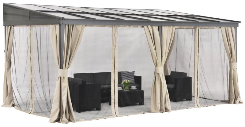 A 3 x 5 m-es Tarragona Garden Point alumínium terasztető segít elkülöníteni a pihenőterületet - védve a napsütéstől, az esőtől és a hívatlan vendégektől, a rovaroktól.