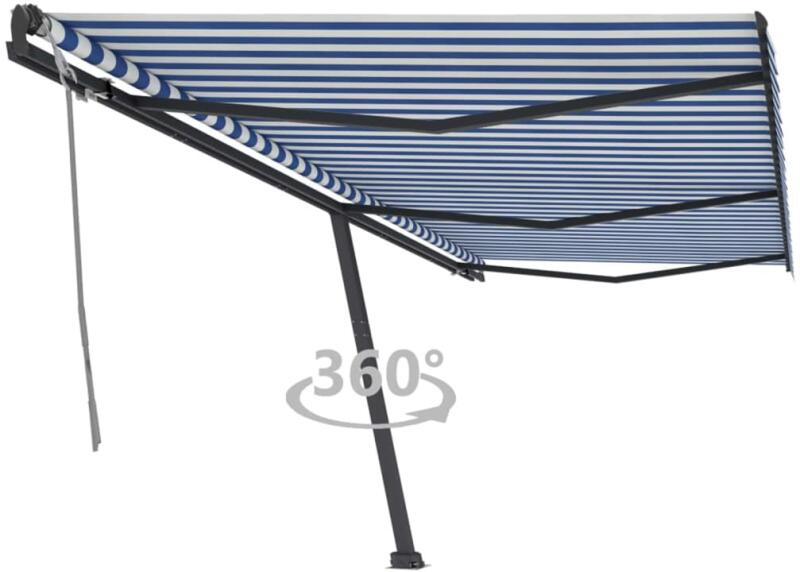 vidaXL kék és fehér kézzel kihúzható póznás napellenző 600 x 300 cm