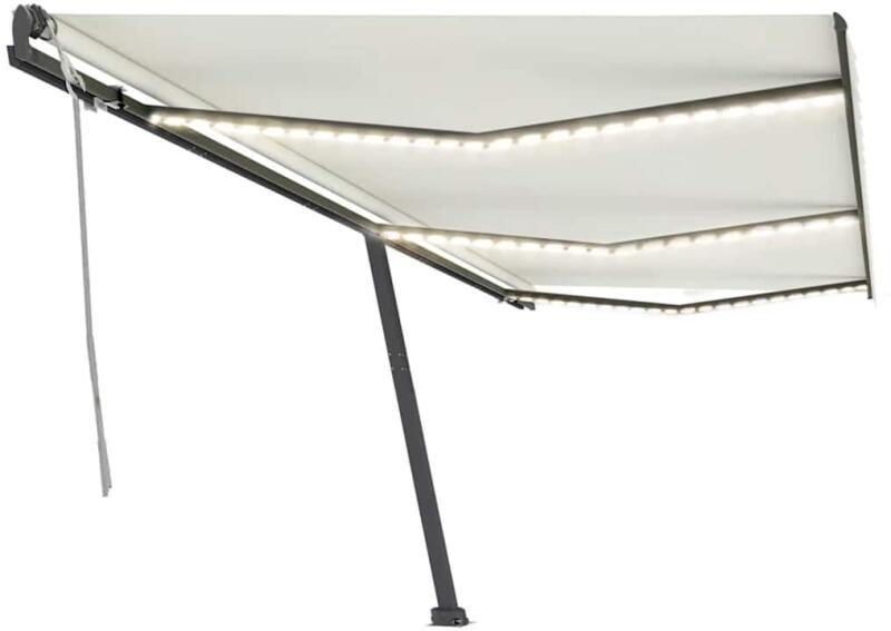 vidaXL krémszínű kézzel kihúzható LED-es napellenző 600 x 300 cm