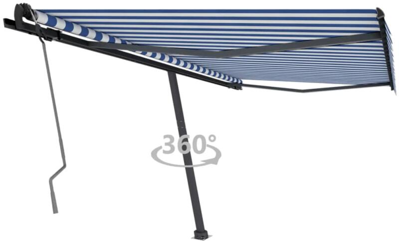 vidaXL kék és fehér kézzel kihúzható póznás napellenző 400 x 350 cm